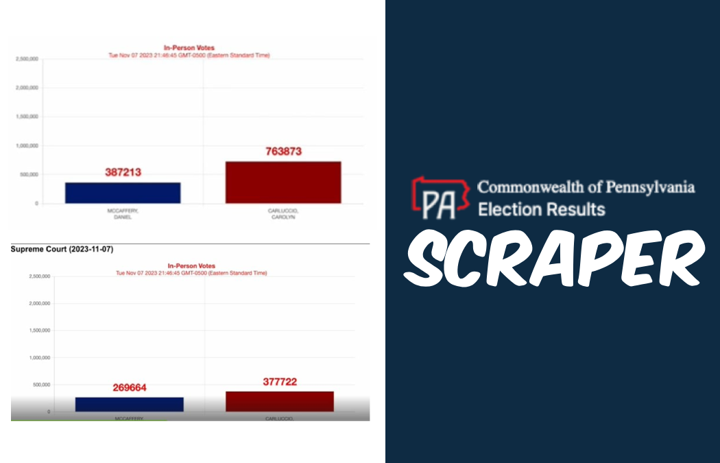 Downloads and archives published election results throughout the election reporting time period. The archived results ensure accurate final tallies, and helped to identify and uncover impossible vote deletions in Pennsylvania.