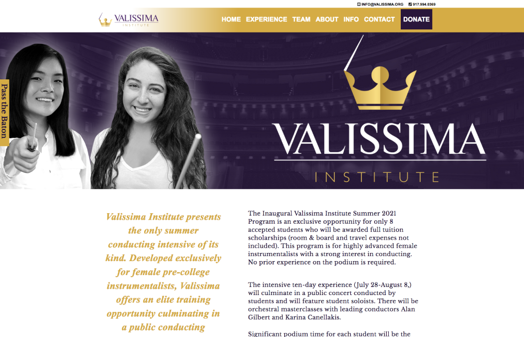Valissima Institute offered a conducting program leveraging world-class training with extensive podium time to exceptionally gifted young female musicians.